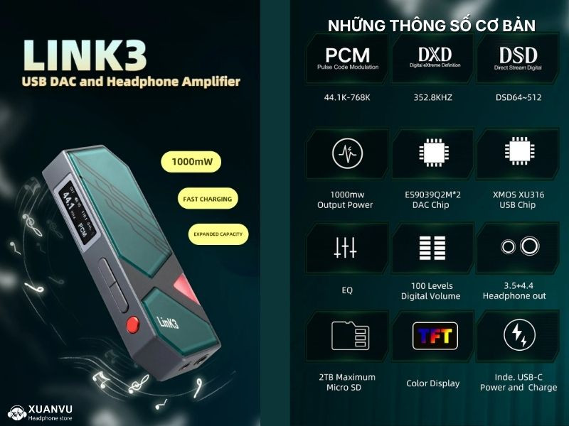 xDuoo Link 3 là sự lựa chọn tối ưu cho những audiophile cần một thiết bị di động có công suất mạnh mẽ như máy bàn, hỗ trợ lưu trữ thẻ nhớ và khả năng tương thích đa thiết bị cực tốt. Đừng ngần ngại, hãy nhấc máy gọi tới tổng đài 097395 3333 | 028 73002728 của Xuân Vũ Audio để được hỗ trợ tư vấn và đặt hàng.
