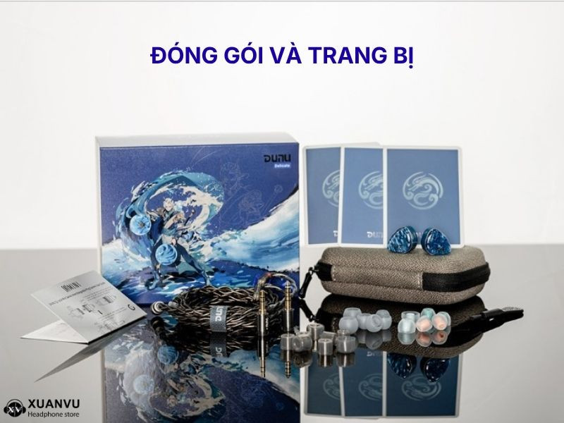Từ trước tới nay, Dunu luôn nổi tiếng là hãng tai nghe "hào phóng" trong khâu đóng gói. Đại đa số các mẫu tai nghe của hãng đều được đóng gói và trang bị rất nhiều phụ kiện đi kèm. Dunu DN-142 cũng không phải ngoại lệ. Ngay từ phần vỏ hộp, hãng đã thiết kế với tông màu xanh chủ đạo, họa tiết mang hơi hướng thủy mặc hoặc rồng/sóng nước (theo chủ đề Ngao Bính - Ao Bing), phía trên là tên model được in dập nổi tinh tế.