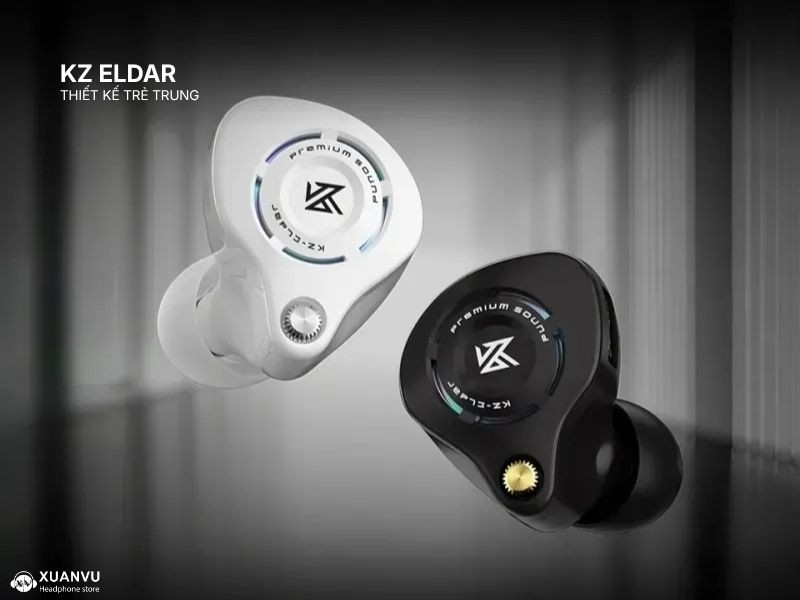 KZ Eldar phần vỏ (shell) được đánh bóng mịn màng, kết hợp với các tấm bảng kim loại trang trí tinh tế, tạo cảm giác sang trọng nhưng vẫn nhẹ và bền. Tai nghe giữ nguyên ngôn ngữ thiết kế dạng Inear Monitor đeo vòng sau tai, đem lại cảm giác đeo chắc chắn và thoải mái trong thời gian dài. Sản phẩm có hai tùy chọn màu sắc cơ bản là đen và trắng.