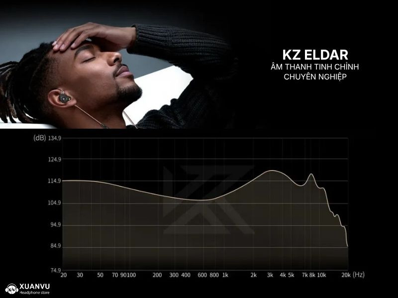 Bên cạnh đó, KZ Eldar được tinh chỉnh chất âm dựa theo biểu đồ âm thanh Harman Curve, mang lại sự cân bằng giữa các dải: bass sâu, mid đầy đặn và treble mượt mà.