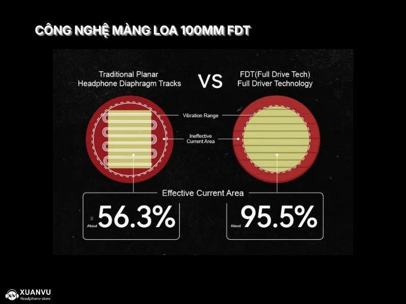 Nói về Công nghệ Truyền động Toàn dải (Full Drive Technology - FDT), phần rung của màng loa được đặt trong 1 từ trường phẳng đồng nhất và các mạnh dẫn động hoạt động hiệu quả gần như trên toàn bộ bề mặt rung. Diện tích màng loa hiệu quả lên tới 95,5%, cao hơn mức 56,3% ở công nghệ driver từ phẳng truyền thống rất nhiều. Điều này tạo ra lực truyền động đồng đều trên toàn bộ bề mặt, tương đương với tai nghe tĩnh điện, loại bỏ hiện tượng rung phân mảnh (split vibration) và mang lại hiệu suất âm cao vượt trội so với tai nghe từ phẳng truyền thống.