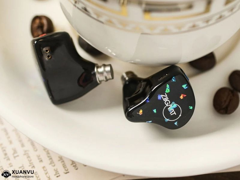 Phần quan trọng nhất trong hộp chính là cặp IEM. Housing được đúc từ nhựa resin y tế với bề mặt đen bóng và các đường vân tinh tế trên faceplate. Hình dáng của Doscinco được thiết kế dựa trên dữ liệu công thái học, dù chứa tới 5 driver (trong đó có 2 DD 10mm khá lớn) nhưng cảm giác đeo vẫn rất ôm tai và cách âm thụ động cực tốt.